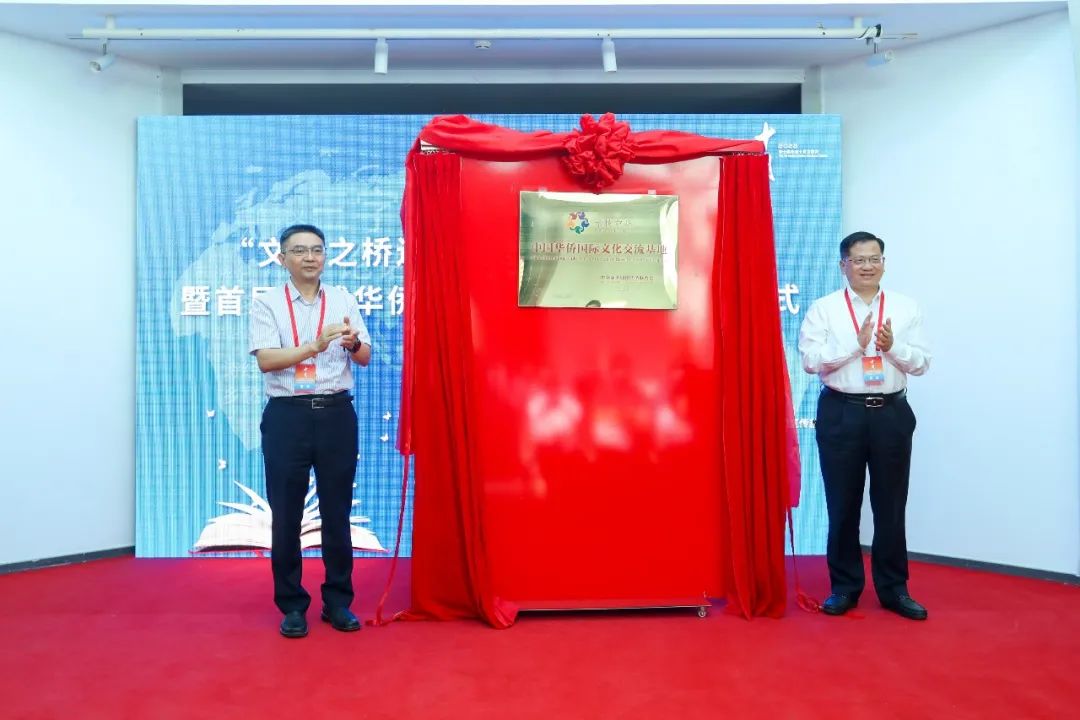 严卫群(右)、吴文学(左)为十月文学院入选第八批“中国华侨国际文化交流基地”揭牌