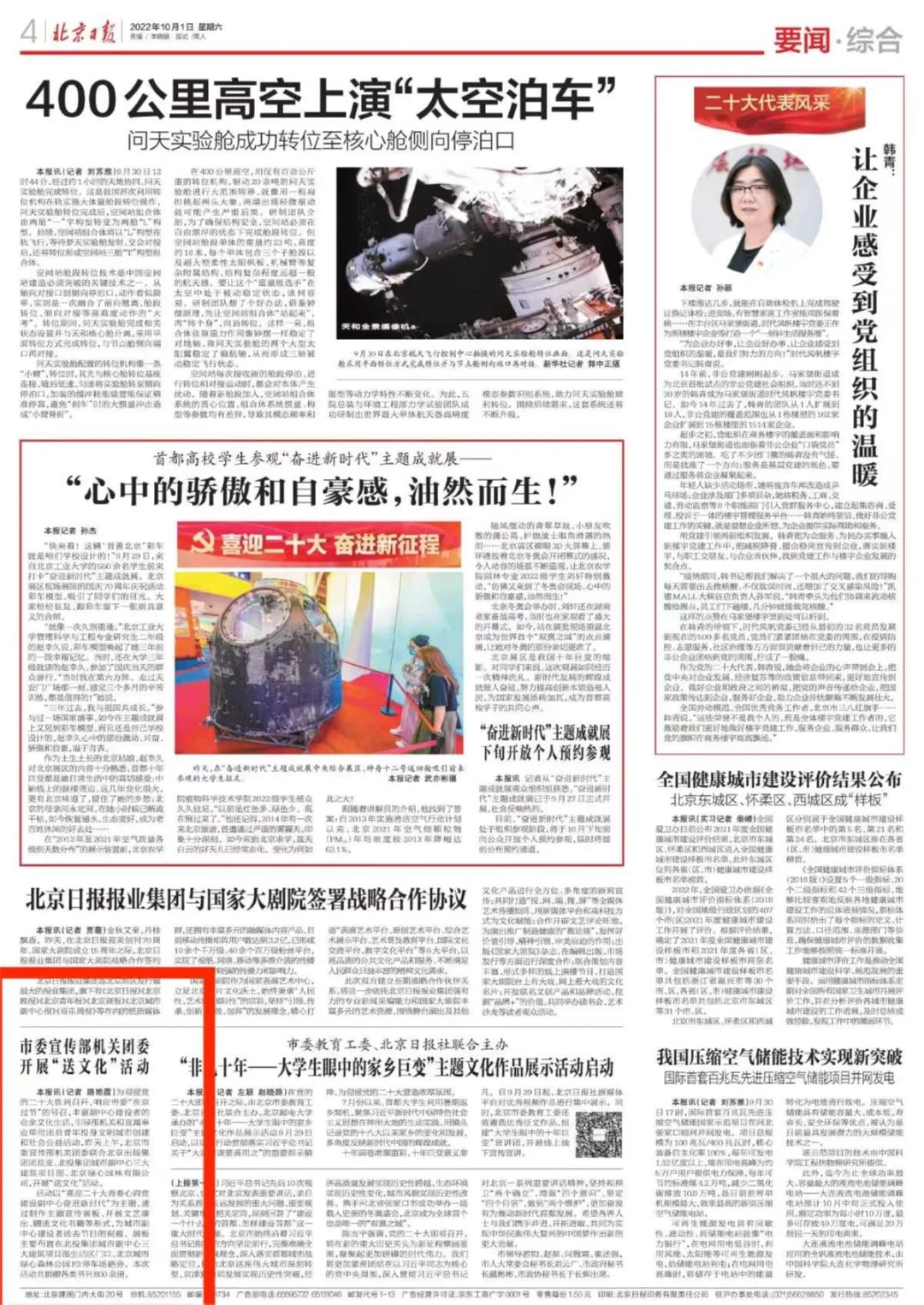 9月30日上午,为迎接党的二十大胜利召开,响应市委“在京过节”的号召,丰富副中心建设者的业余文化生活,引导团员青年投身文明城市创建和社会公益活动,集团团总支组织青年职工参加市委宣传部机关团委,在北京城市绿心森林公园开展的“喜迎二十大青春心向党 建设副中心奋进新时代”送文化活动。