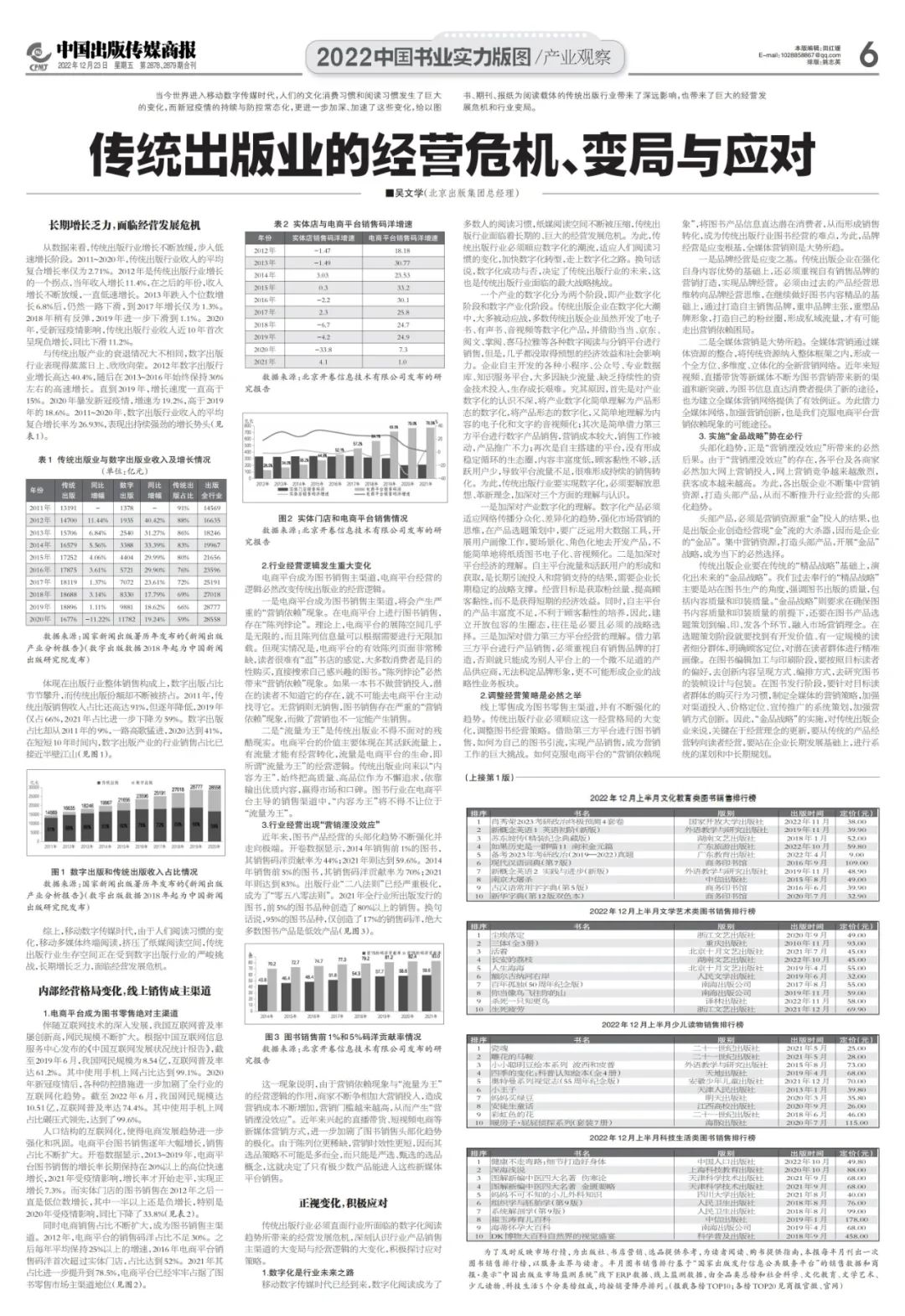 传统出版行业必须直面行业所面临的数字化阅读趋势所带来的经营发展危机,深刻认识行业产品销售主渠道的大变局与经营逻辑的大变化,积极探讨应对策略。