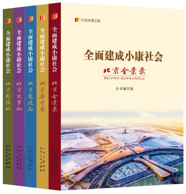 为多维度展现中国全面建成小康社会的伟大征程,在中宣部新闻局领导下,人民出版社统筹协调下,各地方人民出版社共同努力下,成功推出“纪录小康工程”丛书。其中,“北京卷”由北京出版集团北京人民出版社出版,该书全方位记录了首都北京在全面建成小康社会历史进程中的关键节点、典型人物和重要事件,全景式、立体化、多维度呈现了决胜全面建成小康社会的首都贡献。《“纪录小康工程”地方丛书•北京卷》共五册,分别是《全面建成小康社会北京全景录》《全面建成小康社会北京大事记》《全面建成小康社会北京奋斗者》《全面建成小康社会北京变迁志》《全面建成小康社会北京影像记》。