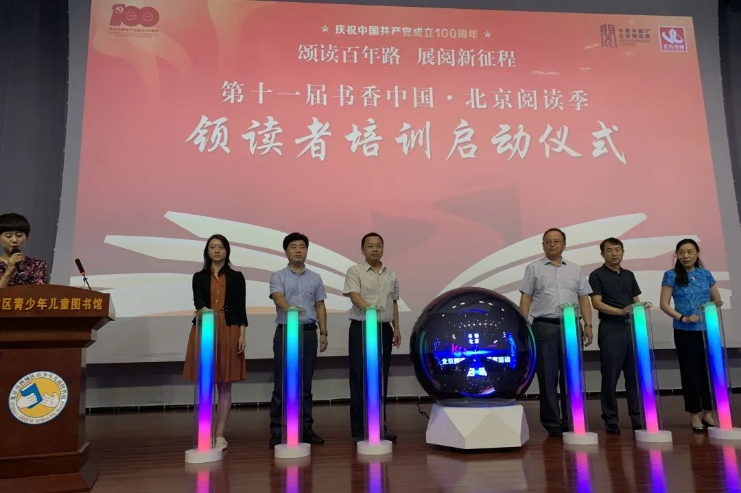 2022年北京阅读季“领读者”计划启动仪式现场,与会领导按下启动手印