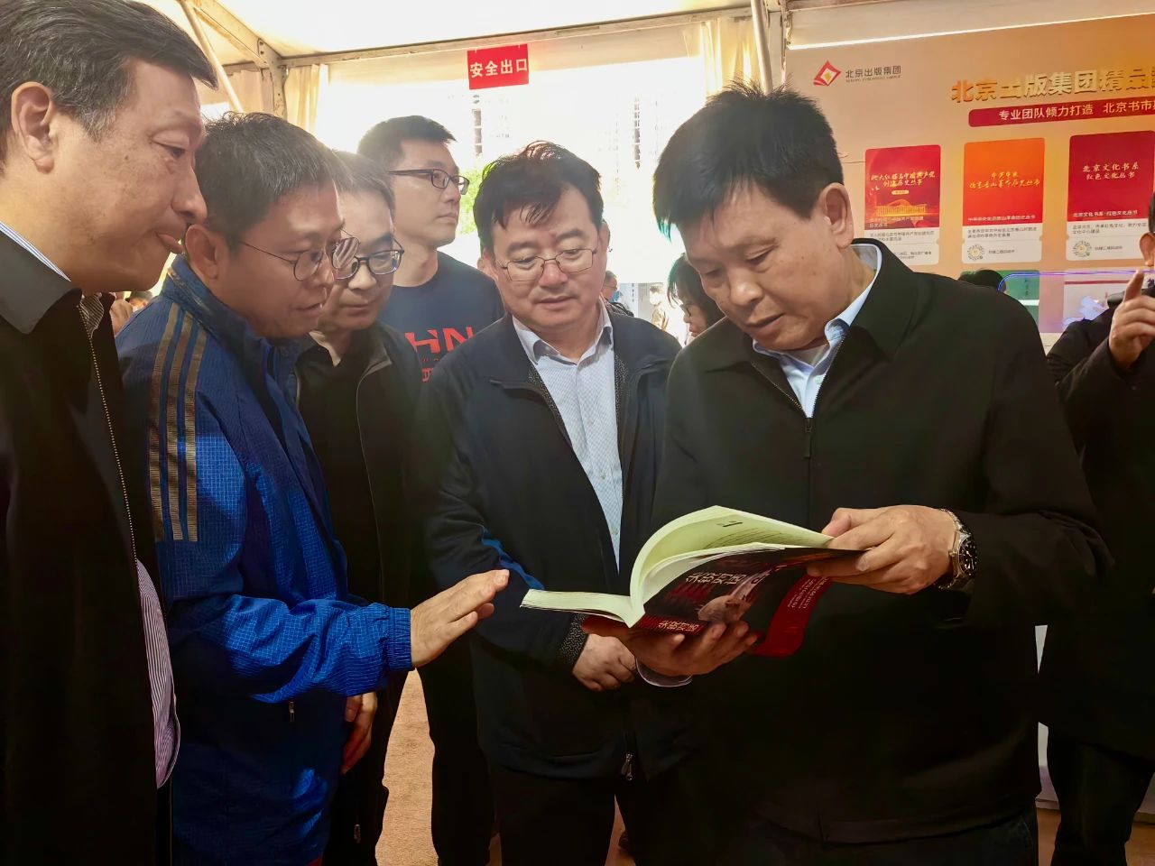 4月16日下午,北京市委常委、宣传部部长莫高义莅临2023北京书市北京出版集团展区,检查指导图书展销工作。集团党委书记、董事长张爱军介绍参展情况。翟德罡、文献等有关负责同志陪同。