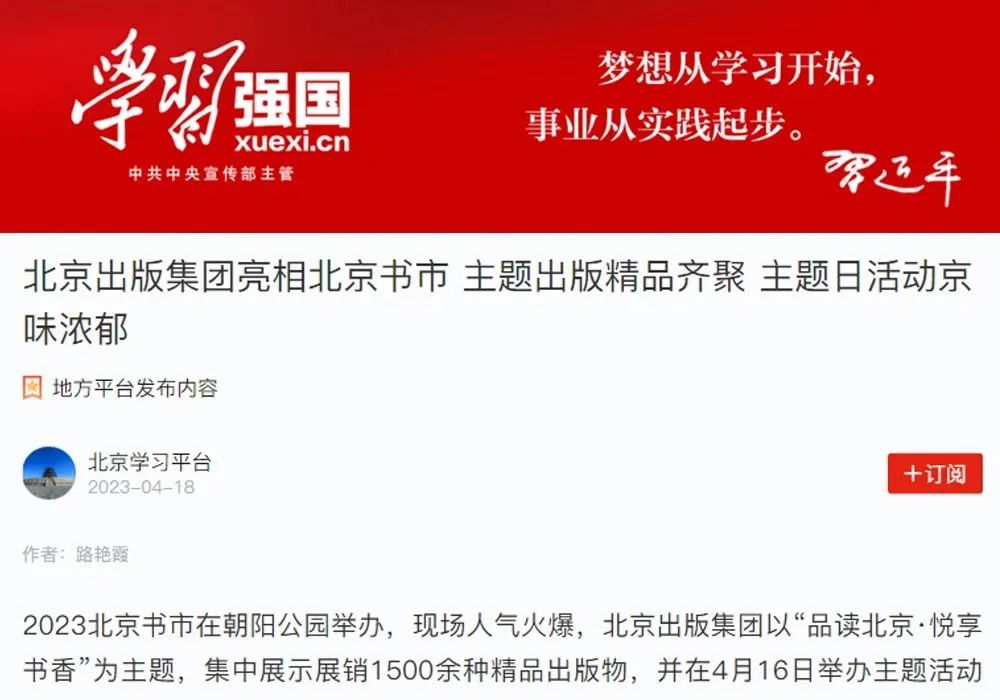 在4月23日举办的第十三届书香中国•北京阅读季启动式上,集团发布重磅力作“北京文化书系”,打造新时代北京文化精品,恰逢其时、意义重大。