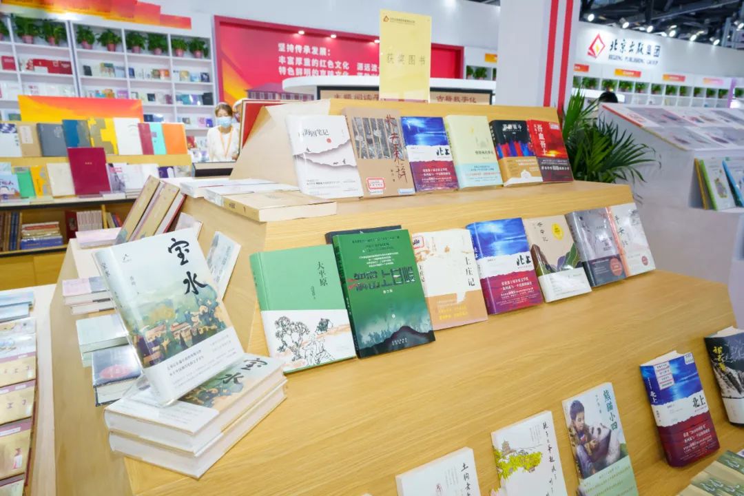 获奖出版物展柜,集团重点展出十年来荣获精神文明建设“五个一工程”奖、中国出版政府奖、中华优秀出版物奖、茅盾文学奖、中国好书等国家级奖项和入选国家级、省部级出版规划的精品力作。如文学类的《远去的白马》《平安批》《北上》《云中记》《宝水》《西海固笔记》,科普类的《正在消失的美丽——中国濒危动植物寻踪》,人文社科类的《故宫博物院藏品大系·书法编(30)清》,少儿类的 “耗子丫丫的故事”、《熊猫小四》、《这样的鲁迅》。