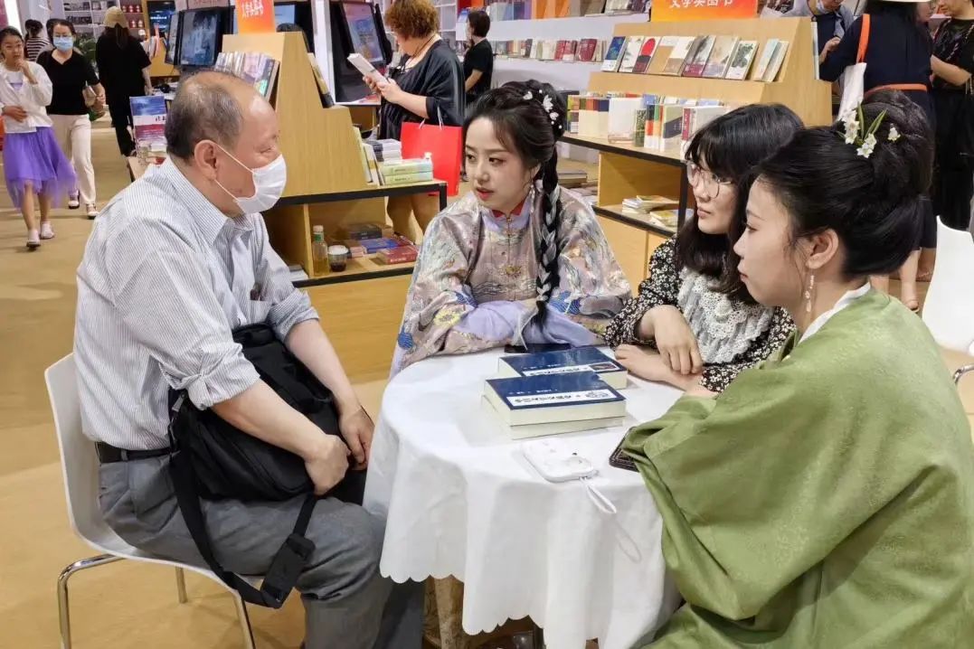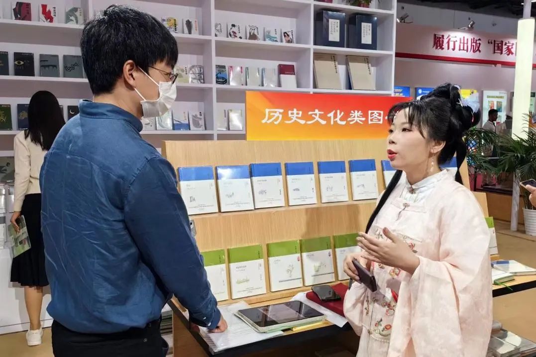 图博会期间,集团线上、线下举办圆桌对谈、文化讲座以及新书发布会等多场精彩文化活动;同时还在展会现场进行中英双语直播探展,工作人员身着汉服为各国线上客商、读者介绍集团新书好书,讲述作品背后的中国故事。