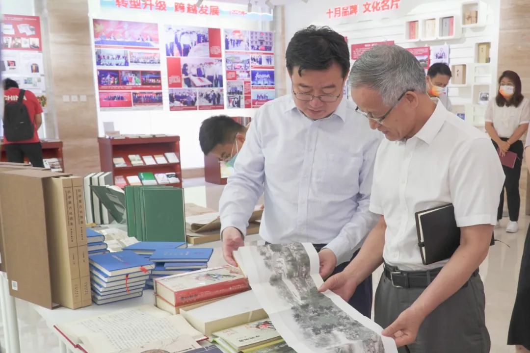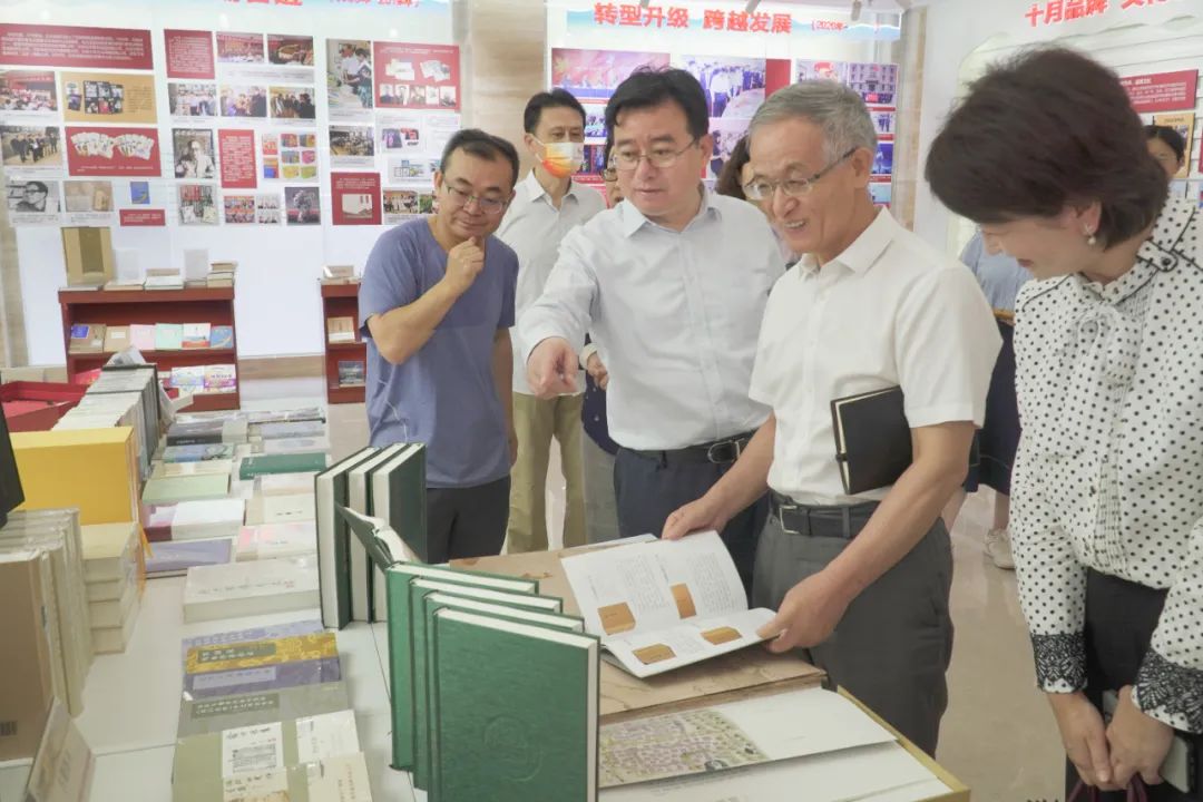 座谈前,伍义林一行参观了集团社史馆,重点关注了“北京文化书系”、《长江运河图卷》、《京津冀古地图集·国图卷》、《伍连德画传》等精品图书,详细了解了集团的历史沿革、荣誉成果、转型发展等情况,对集团在精品出版领域取得的成就表示赞赏。