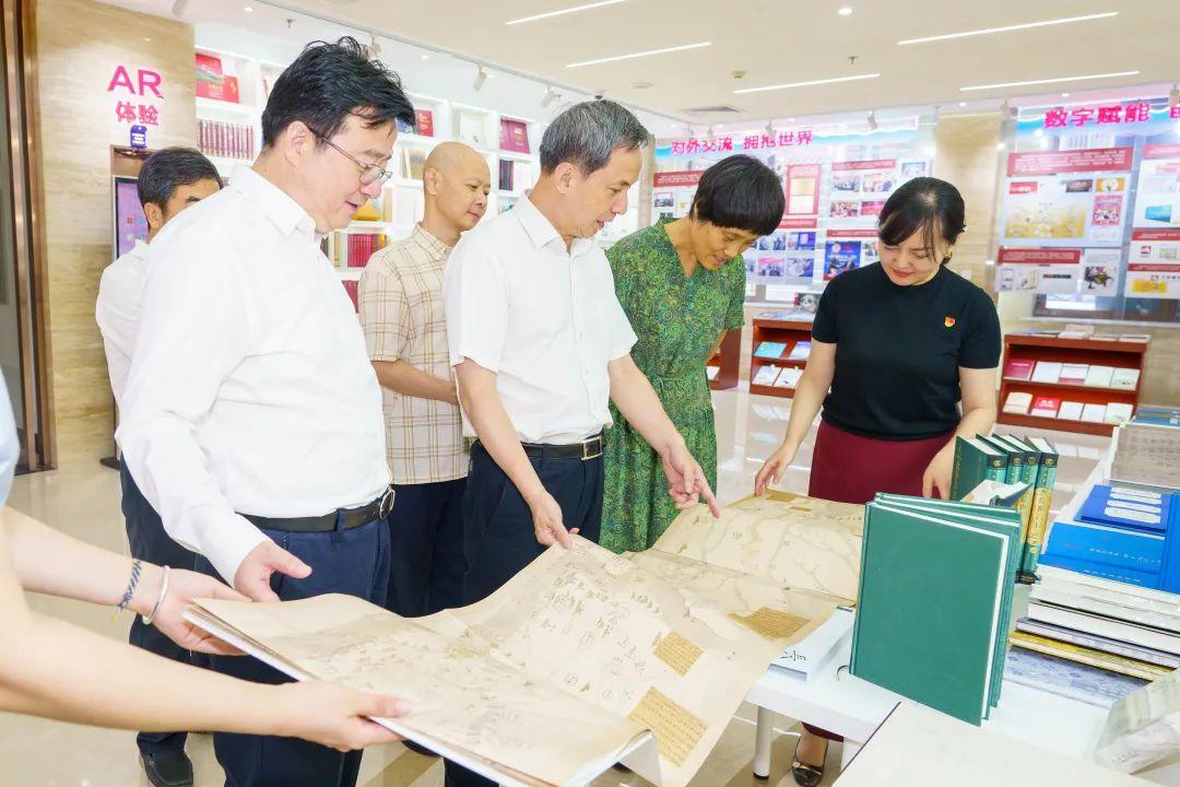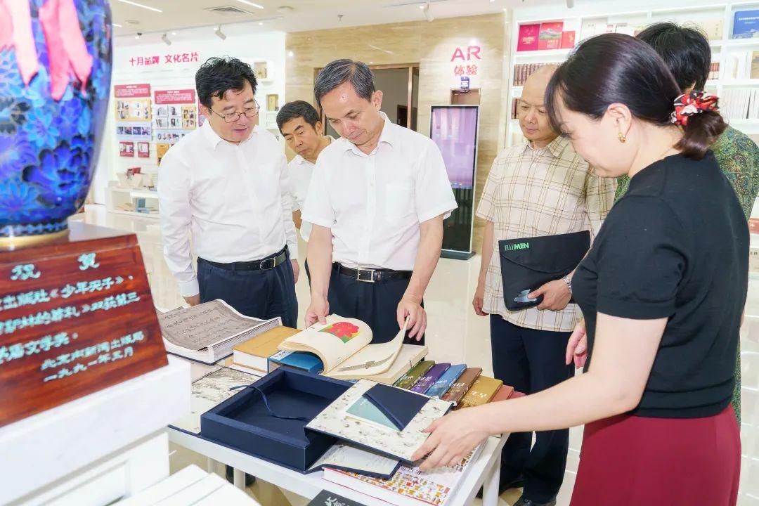 在集团社史馆,卢彦一行详细了解了集团历史沿革、精品生产、转型发展、对外交流等各项工作情况。重点听取了“北京文化书系”、“北京古籍丛书”、“老北京述闻”、《天地中和:北京中轴线文化遗产》等聚焦北京历史文脉赓续传承、首都“三个文化带”保护发展等主题的精品图书出版情况汇报;认真翻阅了《长江运河图卷》《九边图》《阅古楼 御刻三希堂石渠宝笈法帖》等古籍类图书;还着重关注了《伍连德画传》《雨燕飞越中轴线》《曹雪芹风筝艺术》等各类重点图书,尤其对《平凡的世界》《穆斯林的葬礼》《北上》《远去的白马》等文学精品予以充分肯定,对集团长期以来坚守出版主业,以首善标准不断推出精品力作给予高度评价。