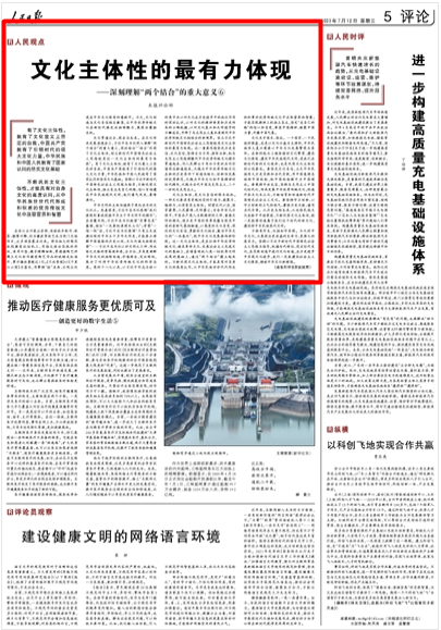文化贯通过去、现在与未来。在文化传承发展座谈会上,习近平总书记深入阐释“两个结合”的重大意义,深刻指出“‘结合’巩固了文化主体性,创立新时代中国特色社会主义思想就是这一文化主体性的最有力体现”。有了文化主体性,就有了文化意义上坚定的自我,中国共产党就有了引领时代的强大文化力量,中华民族和中国人民就有了国家认同的坚实文化基础。坚持以习近平新时代中国特色社会主义思想为指导,不断巩固文化主体性,独立自主走自己的路、信心百倍建设中华民族现代文明,我们意气风发、豪情满怀。