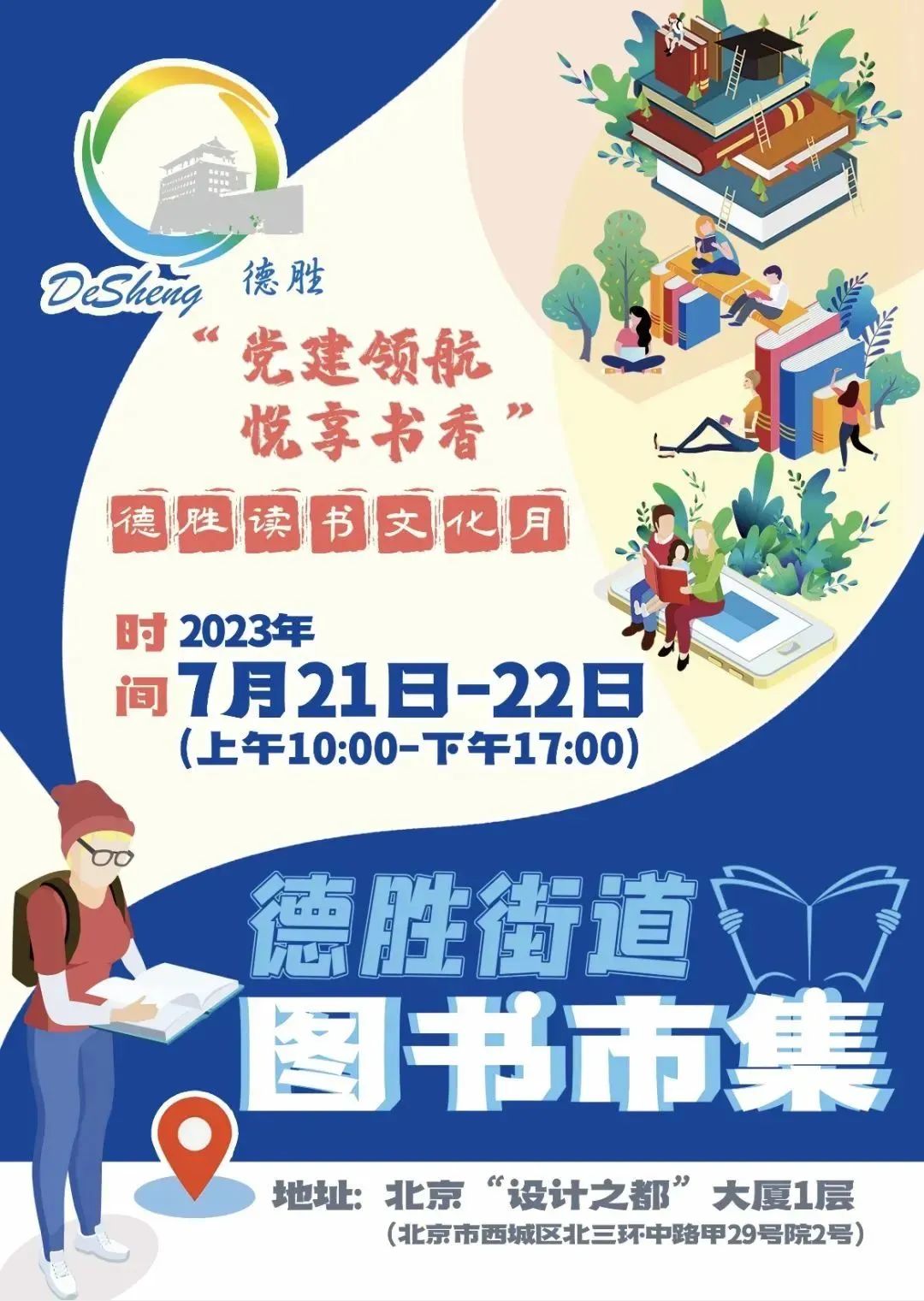 北京出版集团作为德胜街道党建协调委员会首轮轮值单位,牵头筹办的德胜街道图书市集活动将于7月21日、22日在北京设计之都大厦一层盛大举办!此次活动是集团作为首都国有文化企业,充分发挥自身优势,以文化惠民活动为载体,服务首都居民文化生活需要,增强群众精神力量,为促进区域共建共治共享贡献京版力量的担当之举。高等教育出版社、中国大百科全书出版社、北京磨铁文化集团等德胜文化联盟企业、特邀单位共同参加。