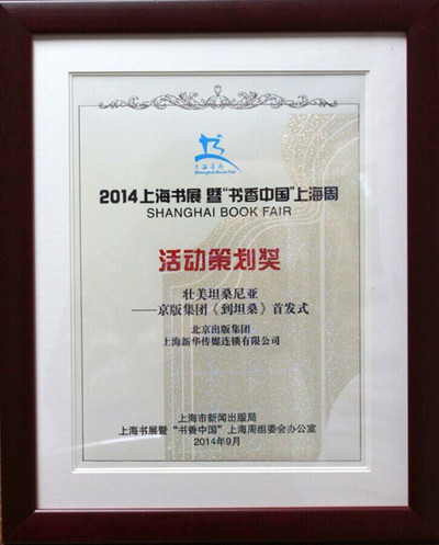 “壮美坦桑尼亚——京版集团《到坦桑》首发式”获2014上海书展“活动策划奖状
