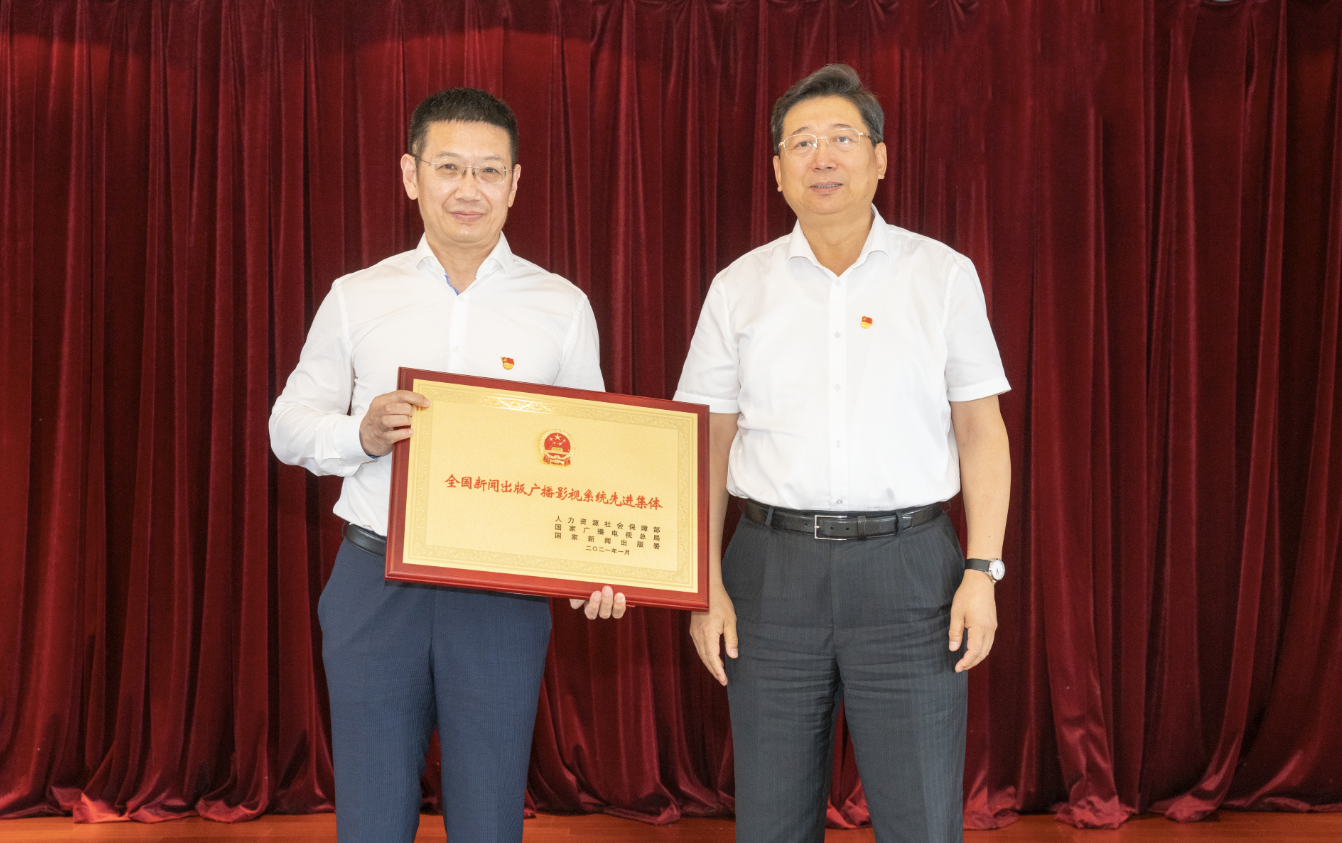 2021年9月14日,集团召开党委(扩大)会,会上集团党委书记、董事长康伟同志向原人文社科图书出版事业部颁发奖牌和证书,安东同志代表原人文社科图书出版事业部领奖。