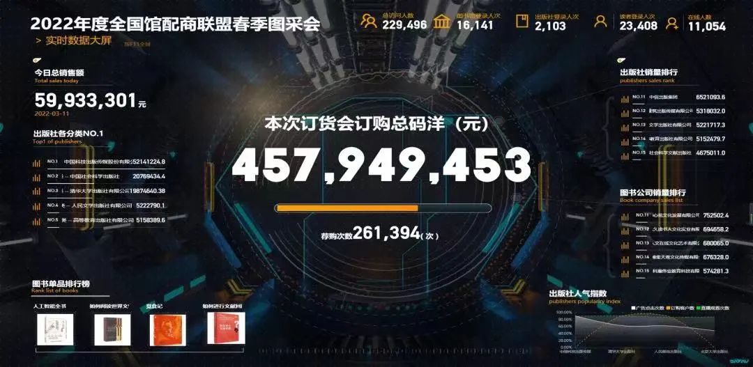 近日,为期5天的2022年全国馆配商联盟春季线上图采会圆满闭幕。本届图采会由中国书刊发行业协会指导,北京人天书店有限公司主办,全国馆配商联盟协办。参展图书馆2855家、出版单位505家、馆配商22家, 据实时数据显示,本届图采会交易总码洋4.58亿,读者荐购总次数26万余次。