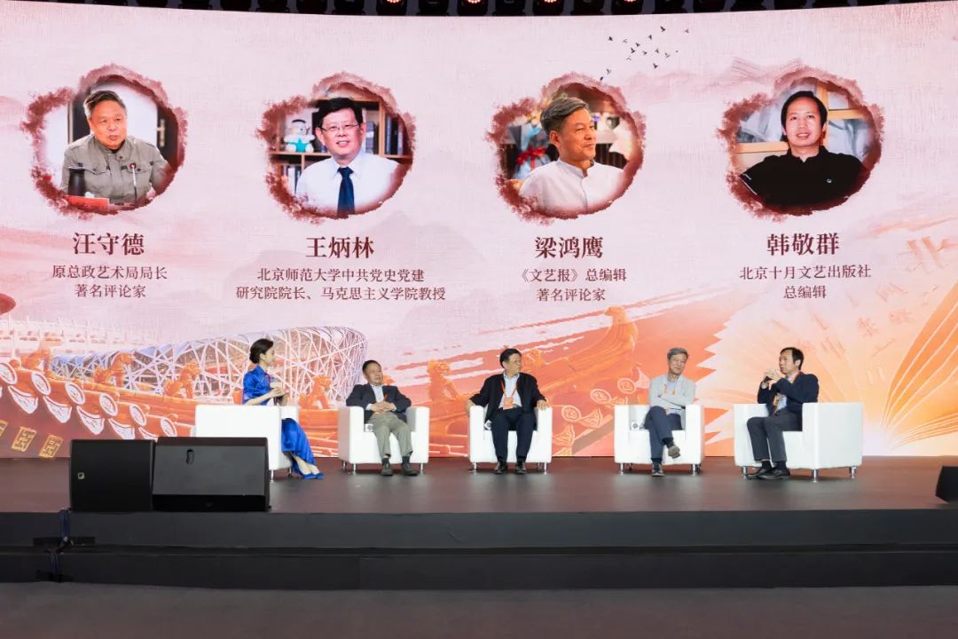 随后,在场四名知名专家进行了“名家话阅读”对话环节。原总政艺术局局长、著名评论家汪守德、北京师范大学中共党史党建研究院院长、马克思主义学院教授王炳林、《文艺报》总编辑、著名评论家梁鸿鹰、北京十月文艺出版社总编辑韩敬群就阅读与创作的关系进行了对话。