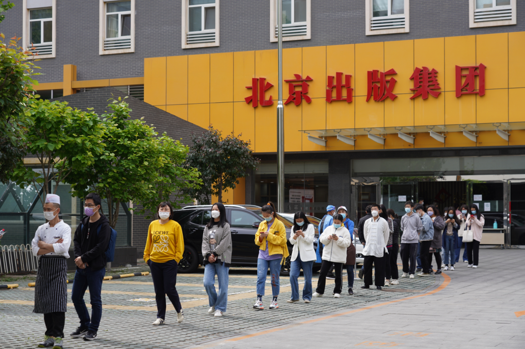 疫情就是命令,防控就是责任。新冠肺炎疫情近期有反扑的态势,为有效控制疫情传播,北京各区开启了新一轮全员核酸检测工作,打响了新一轮抗击疫情阻击战。北京出版集团作为首都文化企业的重要一员,勇担使命、冲锋在前,组成了由北京大学第一医院医务工作者、集团京文物业公司职工为主体,四世同堂餐饮公司员工、德胜街道工作者和周边社区居民为重要组成力量的防疫工作者团队。
