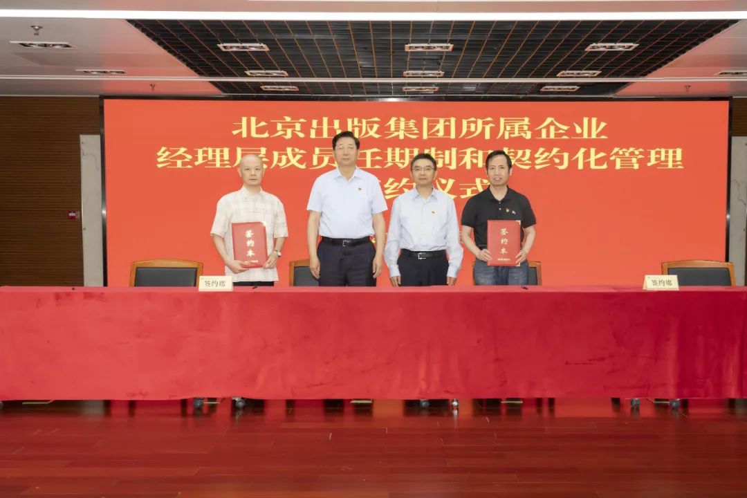 6月28日下午,北京出版集团所属企业经理层成员任期制和契约化管理签约仪式在集团12层报告厅举行。集团党委书记、董事长康伟,党委副书记、总经理吴文学分别与子(分)公司企业负责人代表签约。党委副书记曹蕾主持签约仪式。