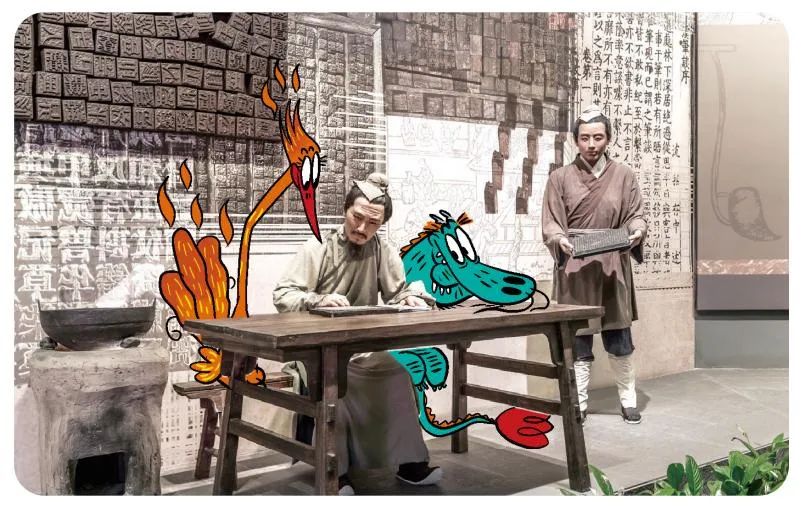 书中两位主人公“侃侃”“闪闪”向毕昇学习活字印刷