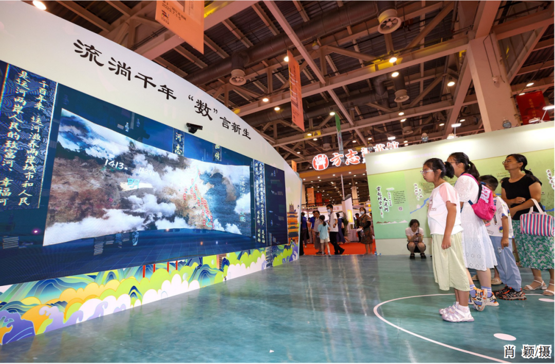 ▲第十三届江苏书展“流淌千年 ‘数’言新生——穿越时空的大运河”数字体验展现场,观众“身临其境”地感受江苏历史悠久的大运河文化韵味。肖 颖/摄