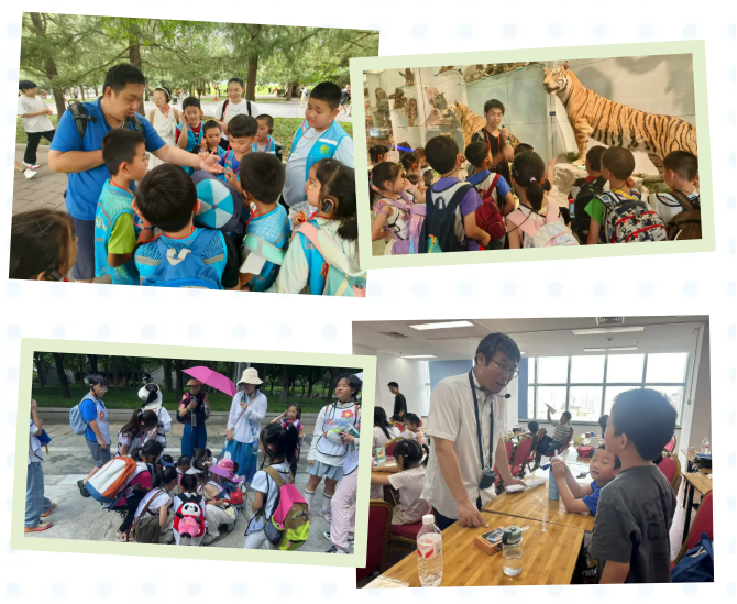 这是一次融合知识与体验的快乐启蒙,让成长在真实的触摸与行走间悄然发生。托管班采用“室内学习+室外探索”相结合的形式,手工DIY、科学实验、自然踏查、城市citywalk等多样活动让孩子们在“玩中学、学中玩”。在制作太和殿匾额、鸱吻冰箱贴的过程中,孩子们锻炼了动手能力;探访中轴线中,孩子们在中轴线南端起点永定门、沿线古建筑先农坛中了解“北京城脊梁”的非凡意义;探索天坛夏日动植物活动,让孩子们亲近自然,培养了观察力和探究精神。每日不同时间段的茶歇、课间活动、观影阅读等活动,营造了轻松舒适的托管氛围,让孩子们在假期里精神有启迪、学业有辅导、生活有陪伴、成长有守护。