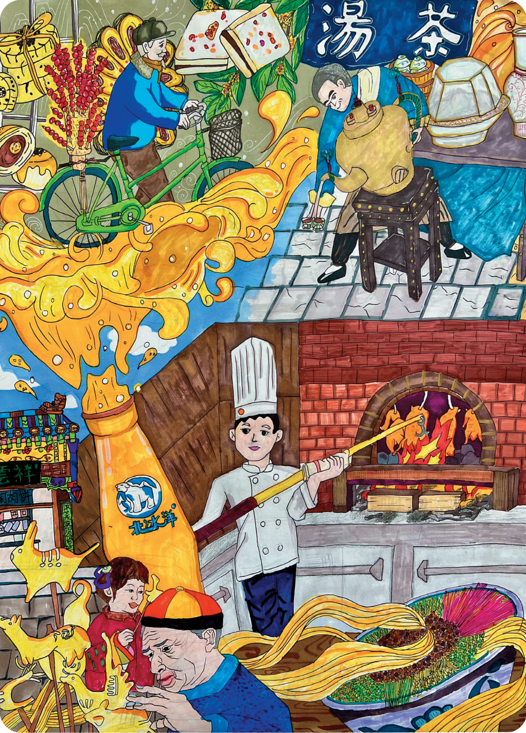 为庆祝新中国75周年华诞,国庆假期,北京出版集团推出“童画北京”专题,邀您一起以翰墨书香庆华诞,着丹青描绘新华章! 本期为您带来画作《舌尖上的北京》,摘自《我爱北京——2024全球青少年征文优秀...