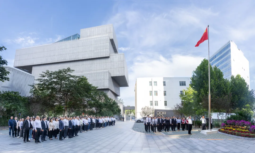 9月29日上午,京版文化产业园举行集体升国旗仪式,共庆中华人民共和国成立76周年。园区各单位领导干部职工代表200余人参加升旗仪式。