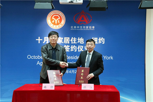 2019年4月27日,“十月作家居住地·纽约”合作签约仪式在十月文学院佑圣寺举办。北京出版集团总经理、十月文学院院长曲仲,北美中文作家协会理事长游江,代表合作双方签署协议。纽约居住地是全球第十处“十月...